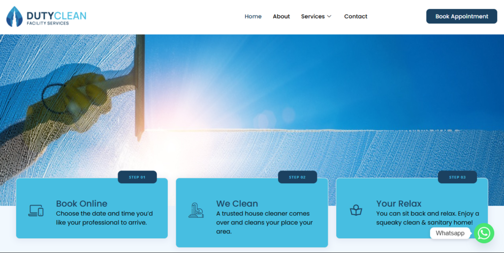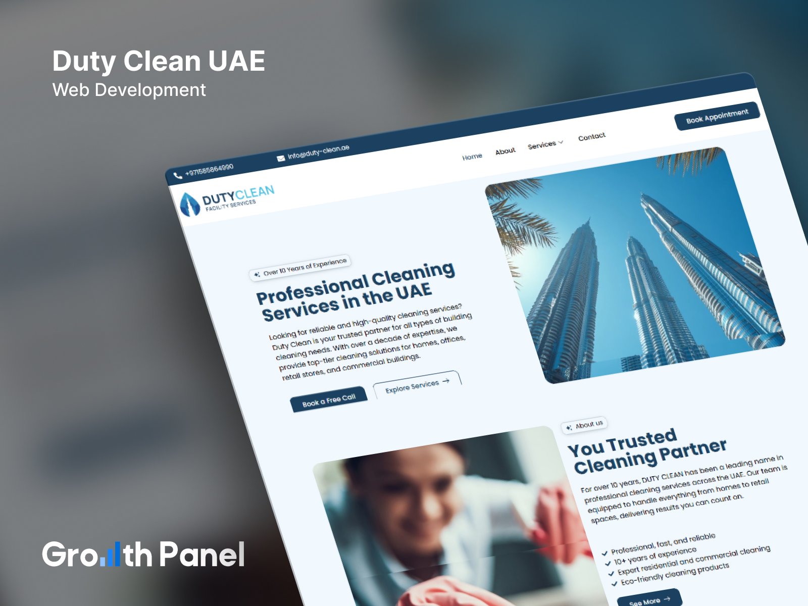Duty Clean is a professional cleaning service provider in the UAE, offering residential and commercial cleaning solutions. The website was designed to showcase their services, simplify online bookings, and enhance customer engagement.